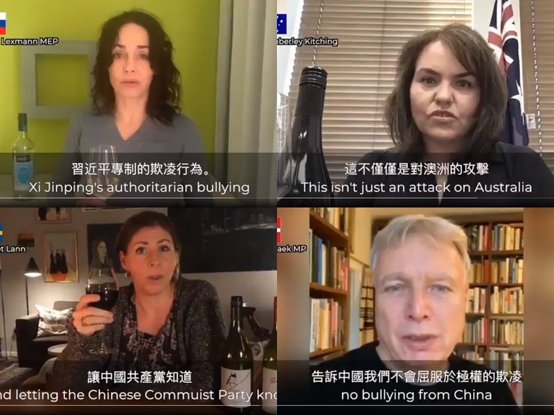 為了反制中國以經濟手段脅迫澳洲,「對華政策跨國議會聯盟」展開全球挺澳洲葡萄酒運動,要向中國宣示,世界各國團結一致拒絕屈服中國的霸凌行為。
