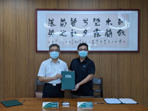 - TRIDA計畫主持人林志城校長(左)代表與沏茶林國際實業有限公司總經理邱國雄簽約