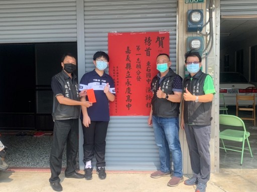 (中央社訊息服務20210715 16:41:51)為鼓勵會考成績優異學子留在嘉義縣高中就讀,嘉義縣家長協會理事長蘇正煌、常務監事林博文及常務理事蔡鑫元15日親赴本次免試入學榜首東石國中涂詠程同學家發放獎助學金。