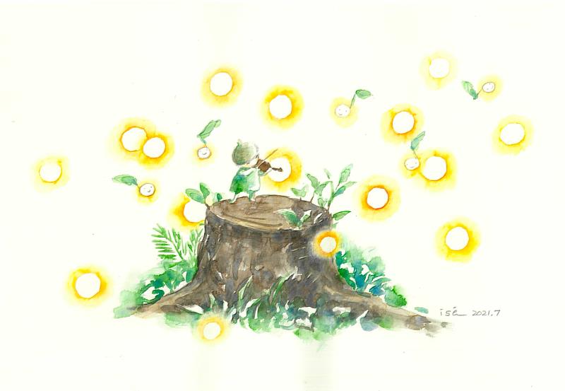 日本重量級繪本作家伊勢英子以「きこえる きこえる 沈黙の歌」(聽得見、聽得見、沈默的歌)首發並創作兩幅作品,繪出在微光中拉起小提琴的精靈、以及自老樹新生的希望,長谷川義史則是描繪孩童手捧如同心臟的蘋果「心はひとつ」(one heart),近(8/11)日則由荒井良二接棒,以兩位彈奏者的形象傳達「I support fcreedom in Hong Kong」(我支持自由的香港)。
