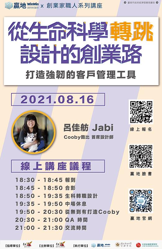 (中央社訊息服務20210824 10:48:09)創業夢不只在矽谷才能做,臺南也有創業資源與環境!臺南市大力扶植國內的新創團隊,提供創業資源,目標在臺南打造世界級新創企業。本(8)月16日臺南贏地創新育成基地與中信金融管理學院共同邀請到「Cooby 酷比科技」首席設計師呂佳舫Jabi,在線上和新創夥伴交流,帶給臺南的新創團隊更多元的創業經驗。