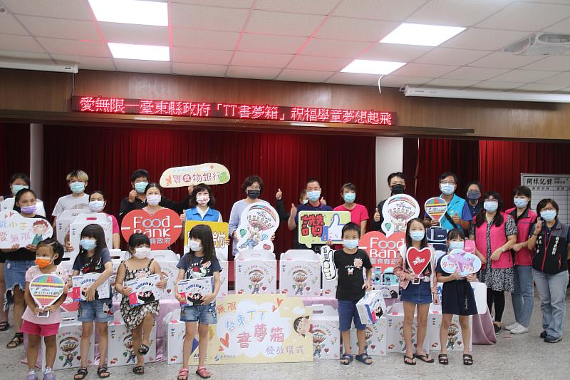 (中央社訊息服務20210824 17:20:22) 9月1日即將開學,臺東縣實(食)物銀行與亞德客有美慈善基金會攜手打造「臺東TT書夢箱」,今(24)日舉行發放記者會,縣長饒慶鈴表示,近期因新冠肺炎疫情,許多家庭的經濟與生活受影響,因此特別準備「臺東TT書夢箱」贈送給縣內弱勢家庭的國小一年級新生,內容包括書包、便當保溫袋、文具組合包等,臺東市區由市公所分送,縱谷、東海岸及南迴線3區由社福中心於開學前發送,讓400位一年級新生背著新書包上學去,以及陪伴縣內學童及家庭共渡疫情難關。