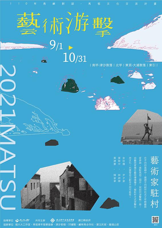 「藝術游擊」駐村活動採公開徵選方式,徵選20-45歲之青年藝術家參與,並於9月至10月各進駐馬祖津沙聚落、東莒大浦聚落、北竿鄉與東引鄉4地2個月時間,藝術家在2個月內進行取材創作,也需在地開辦工作坊課程與辦理成果展演。今年進駐的6位藝術家為金玟儀、尹子潔、林詩樺、張致中、黃建寰與陳省聿。藝術家於駐村期間將陸續開辦課程和發表成果,歡迎有興趣的民眾參與。