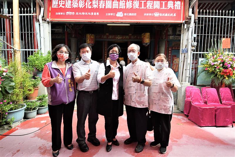王縣長表示,縣府於民國95年將梨春園登錄為歷史建築,民國96年公告登錄「彰化市梨春園北管曲藝」為彰化縣傳統藝術,保存團體為「梨春園北管樂團」,更在民國98年由當時行政院文建會(今文化部)公告指定「梨春園北管樂團」為「重要傳統藝術保存團體」,也是目前唯一由中央指定的重要北管樂團,可以說是臺灣非常重要之北管館閣。縣府為了活化文化資產,積極向文化部爭取經費,於105年完成梨春園曲館修復及再利用計畫,並在108年完成修復工程規劃設計,經於109年向文化部爭取補助款1,099萬5,000元(占75%),加上縣府配合款293萬2,000元(占20%)、所有權人自籌款73萬3,000元(占5%),工程計畫總經費共1,466萬元全部到位,工程500日曆天,預計在112年2月完工,所以修復工程並不是說要保存即可,而是需要業主願意,且中央支持,縣府才能大力去推動。
