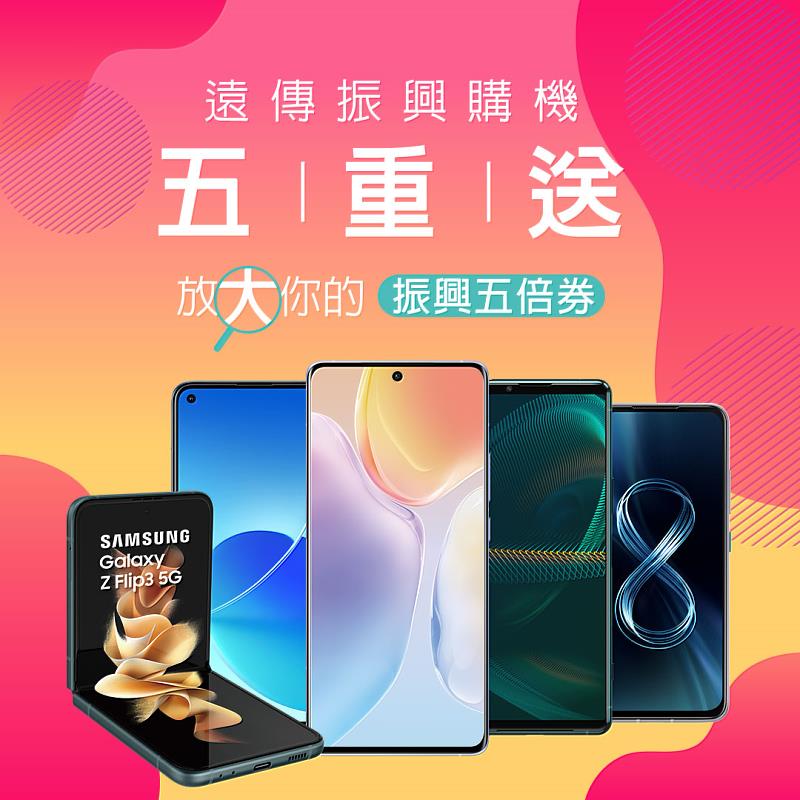 (中央社訊息服務20211001 15:04:27)政府盼帶動國內經濟復甦,鼓勵民眾消費購物,將於10/8國慶連假期間開放民眾領取振興五倍券。遠傳為響應政府振興經濟,攜手五大手機品牌,加碼推出「振興購機五重送」優惠活動。10/2至11/15,申辦遠傳心5G方案,搭配五大品牌指定手機,最高現折2,000元,10/15前指定手機舊換新最高加碼再折5,000元;此外,購機最高可享1%遠傳幣回饋,到遠傳friDay購物月月消費滿額送購物金,最後還有機會抽易遊網萬元旅遊金。光輝10月,各大品牌旗艦新機已接連上市,快來遠傳換新機享振興購機五重送,放大你的五倍券!
