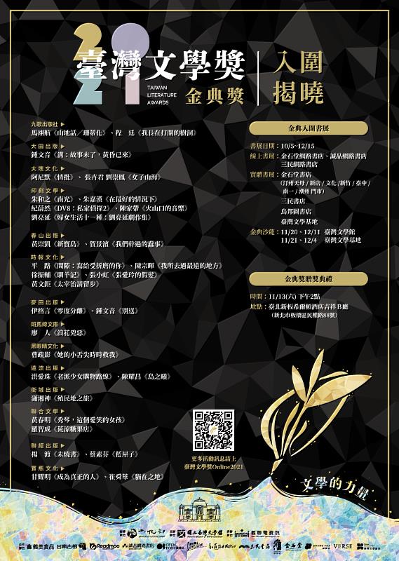 「2021臺灣文學獎」金典獎入圍揭曉 全臺書展同步啟動