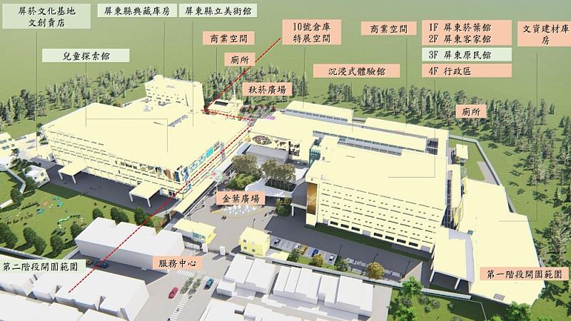 文化處長吳明榮指出,屏菸1936文化基地以屏東多元文化匯集與民眾參與為核心,設置「屏東菸葉館」、「屏東客家館」、「屏東原民館」、「屏東縣立美術館」、「典藏庫房」,「沉浸式體驗館」、「10號倉庫特展空間」、「兒童探索館」、「文化資產建材庫房」,藉由專業研究、典藏、展示與推廣活動,打造品牌化的屏東縣博物館群,另一方面亦作為屏東各地方級藝文場館、文創場域的資源整合、互助合作平台。