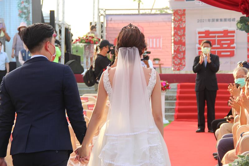 縣府民政處表示,今年縣府集團結婚共有30對新人參加,在潘縣長主婚及屏東地院院長吳進寶證婚下,新人們在具有時間感與歷史感的舊紙漿場旁許下浪漫幸福的誓言,現場除了彌漫著幸福溫馨的氛圍外,也希望讓現場的新人與賓客們感受客家傳統婚禮的文化意涵,讓新人們得到客家婚禮最純樸真誠的祝福。