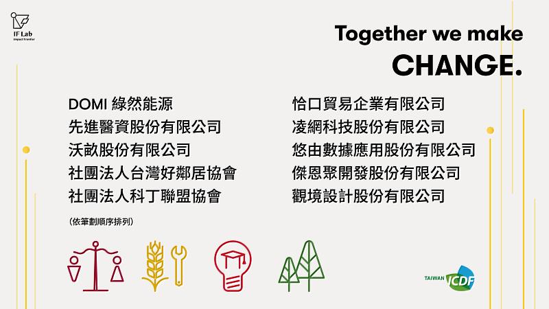 (中央社訊息服務20211221 14:11:56)財團法人國際合作發展基金會(國合會)今(110)年發起全臺首創的援外行動加速器「2021國合會發展x創新x永續實驗競賽-影響力先行者計畫 Impact Frontier Lab」,在企業與公民社會組織承諾共同投入資源至少50%以上的前提下,第一階段有19組團隊報名參加,並由產、官、學界組成評審團於12月1日完成第一階段初審,10組從多元創新提案中脫穎而出團隊,將緊鑼密鼓的開始實務培訓與加速階段,國合會也將持續協助團隊完善計畫內容,以爭取最終在友邦實現計畫的機會。