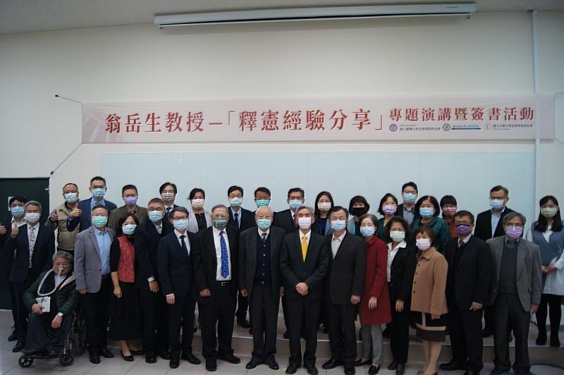 (中央社訊息服務20220105 16:15:09)前司法院大法官並為院長翁岳生教授2021年12月25日蒞臨中興大學進行「釋憲經驗分享」專題演講,此次活動由中興大學法律專業學院、臺灣大學法律學院校友會與中興大學法律學系校友會共同舉辦。