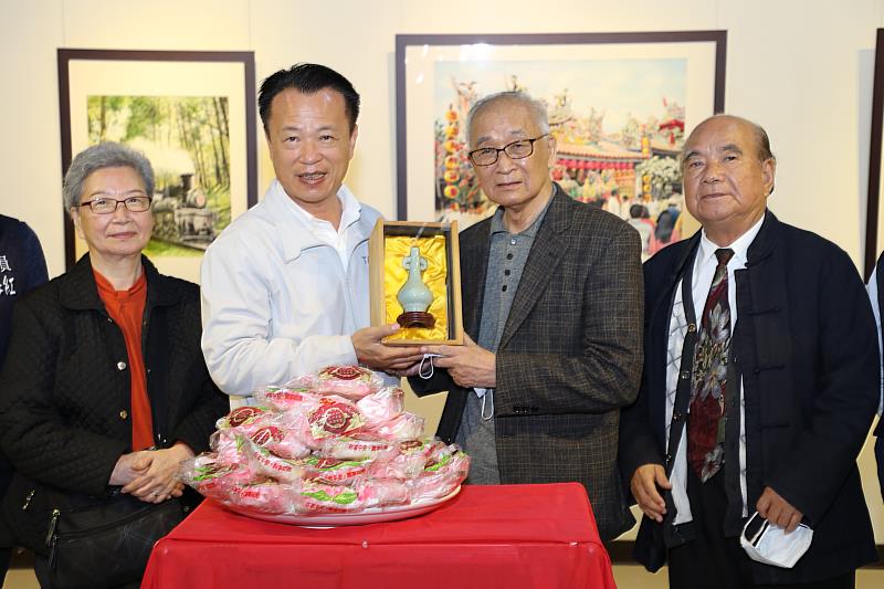 今年是林英哲大師90歲大壽,梅嶺美術館特邀他回到故鄉朴子市,展出的50件精彩作品充滿了人文與土地的氣息與節慶的喜悅,希望藉由他不忘初心的創作精神和溫潤動人的水彩作品,撫慰並鼓舞在全球疫情影響下的大眾,翁章梁還特地致贈祝壽大禮,祝福他身體健康。
