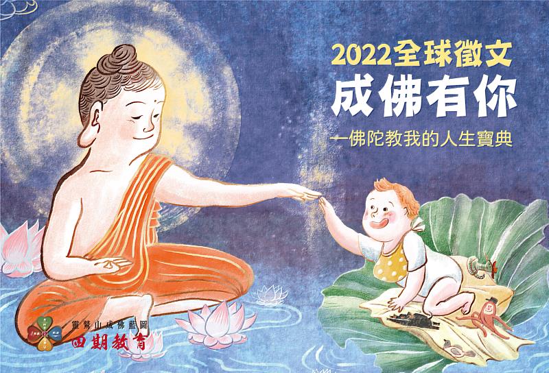靈鷲山「四期教育 成佛有你」全球徵文,由財團法人靈鷲山般若文教基金會主辦,靈鷲山教育院慧命成長學院承辦,設定「佛陀的修行」、「四聖諦」、「八正道」3個不同主題,每個主題各有5個獎項,共33位得獎者名額,最高獎金4000元。凡參加過靈鷲山四期教育「阿含期」初階《初轉之法》相關課程,包括:靈鷲山全球講堂帶狀課程或營隊課程或線上課程學員(含第三梯1月5日開課的線上課程報名新學員)都可參加,收件日期自2022年2月15日至4月15日,將在5月8日母親節暨佛誕日頒獎。