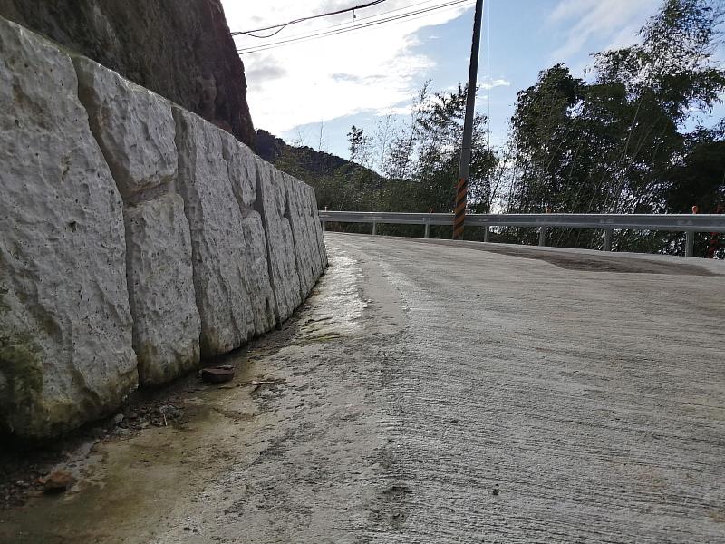 因三峽區五寮里13、14鄰原道路缺乏擋土及安全設施,新北市政府農業局不僅改善部分損壞路段、重新鋪設路面,並針對道路部分排水不良情形設置截水溝及道路側溝等排水設施改善道路排水,且於道路上下邊坡設置擋土牆及安全護欄,避免土石再次崩落,施工期間因山區道路狹小,為確保用路人安全,須兼顧作好工區交維管制及保持周遭環境整齊,施工團隊克服山區道路狹小及假日人潮車潮施工上的問題,共改善約480公尺長的破損路面、設置約240公尺長的擋土牆及285公尺長的安全護欄,維護農民運送產品及進出農地之行車安全。