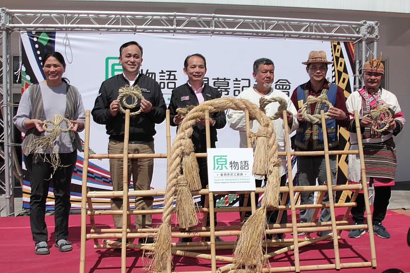 (中央社訊息服務20220310 15:44:10)國立臺灣工藝研究發展中心苗栗工藝產業研發分館以推動多元族群及地方特色工藝為任務,為推廣自然友善與永續精神的原民文化特色,推出「原 物語-臺灣原民工藝展」,今(10)日舉辦開幕記者會,國立臺灣工藝研究發展中心張仁吉主任、苗栗縣原住民事務中心蔣意雄主任、參與展覽的工藝社區代表、臺灣工藝之家張憲平、沈培澤、曾進財、張信裕及陳德隆等及各界貴賓蒞臨。在苗栗在地泰雅族藝師梁玉水(多乃)老師的口簧琴吹奏及原住民精彩舞蹈表演中揭開序幕,展覽藉由原民工藝探究原住民族與臺灣土地相處之中所蘊藏的智慧。