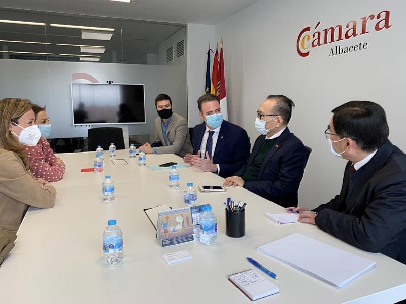 (中央社訊息服務20220314 09:29:23)駐西班牙代表處劉大使德立應卡斯提亞-拉曼查(Castilla-La Mancha)自治區阿爾巴塞特(Albacete)國會眾議員Carmen Navarro及Albacete商會理事長Juan Martínez Moraga邀請於2022年3月11日赴Albacete商會演講。