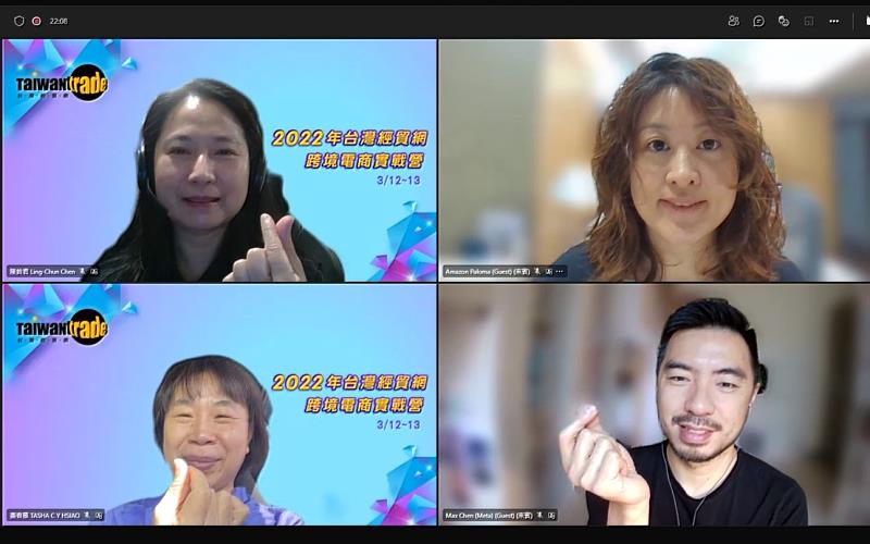 (中央社訊息服務20220315 11:32:24)為協助業者拓展跨境電商,經濟部國際貿易局委託外貿協會營運的台灣經貿網,於今年再度攜手亞馬遜全球開店及Meta舉辦「2022年台灣經貿網跨境電商實戰營」,3月12日舉辦線上開幕及工作坊課程,吸引總計79家廠商、35所大學學生,近500人共同參與。