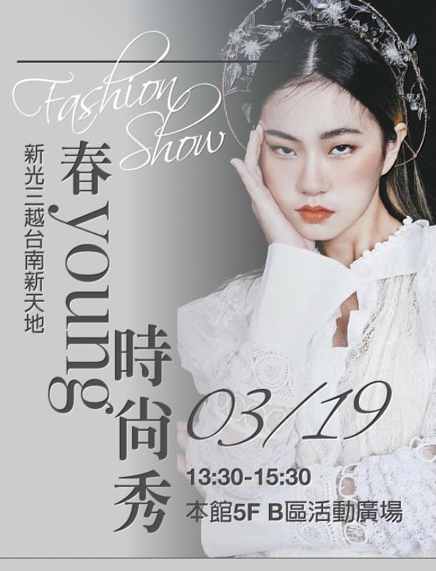 活動「春 Young 時尚秀」預計於3月19日(六)於新光三越臺南新天地5樓分別進行2場時尚秀演出,第1場在下午1點半,崑大時尚學程與日本神戶藝術工科大學服裝設計系畢業作品聯合展出;第2場於下午3點10分,由時尚學程同學進行企劃,演出臺南時尚聯盟廠商作品,期待透過一連串精彩演出,讓崑大時尚在臺南遍地開花。