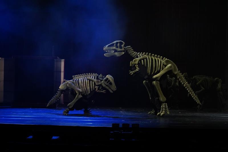 一群熱愛恐龍的主角們潛入博物館,半夜恐龍悄然復活,觸發盜賊偷竊,展開一場冒險之旅。上半場滿台的歌舞場面,帶動現場氣氛,劇情懸疑、好笑又緊張。下半場的重頭戲則是小霸王龍和媽媽的重逢片段,恐龍偶表現出細膩的情緒轉折,大人小孩都看得入戲,甚至感動地哭了。