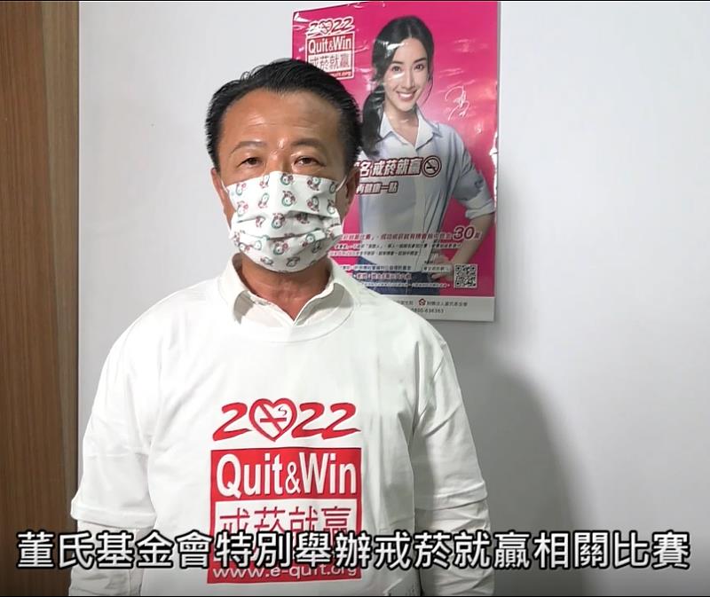 (中央社訊息服務20220414 11:03:45)董氏基金會「2022戒菸就贏比賽」開跑,嘉義縣長翁章梁呼籲癮君子們,響應衛福部長陳時中一同參賽,翁縣長1年前有感健康重要,毅然戒除30年菸癮,並呼籲縣民除了日常抗疫,有吸菸的民眾讓自己再健康一點,現在就加入戒菸行列。