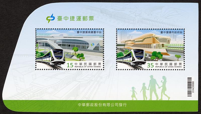 (中央社訊息服務20220420 10:02:02)中華郵政公司為誌臺中捷運通車週年,訂於111年4月25日發行「臺中捷運郵票小全張」1張,內含郵票2枚,郵票面值分別為15元及35元。