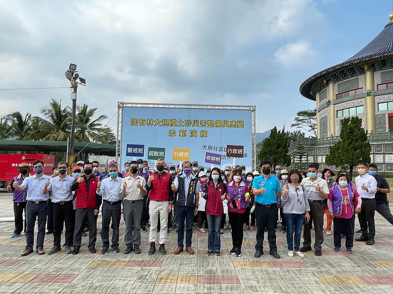 (中央社訊息服務20220421 16:55:58)農委會林務局為因應將自明(112)年起針對具有保全對象的大規模崩塌潛勢區發佈警戒預報,今(21)日特於高雄市甲仙區大田里避難處所針對「國有林大規模崩塌災害」首次辦理災害整備與防災應變示範演練,結合各級政府機關與社區組織踴躍動員,以強化防災工作的縱橫向聯繫,演練過程翔實逼真,順利圓滿結束,達成藉由現地真實情境的模擬演練,以提升居民防災意識、強化社區自主應變能力、促進地方政府精準投入防救災能量,共同確保居民生命財產安全的預期目標。