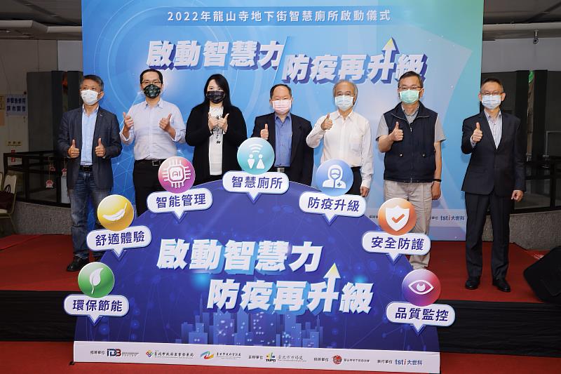 在經濟部工業局智慧城鄉生活應用補助計畫與臺北市政府各級單位的指導與資源整合,「智慧化公廁管理解決方案」在臺北市重點觀光區域-「龍山寺」地下街商圈試行,讓萬華成為防疫楷模。透過各式數據監測元件,蒐集耗材使用狀況、偵測跌倒意外、消毒噴霧等資訊並同步上傳雲端,並運用AI判讀運算,針對各項狀況進行即時通報處理。隨著疫情不斷升高,智慧化公廁也同步做出相對應機制。根據中央流行疫情指揮中心表示,接觸與飛沫傳染是病毒傳染的主要途徑,智慧公廁依據使用狀況,於民眾使用完畢後,可自動進行噴灑消毒液進行完整消毒,減少接觸感染風險,萬華區也是目前全台唯一廁間安裝消毒噴霧的智慧公廁;另考量龍山寺地區活動者年齡偏高,特於智慧公廁內洗手台附近濕滑區域和無障礙廁所,安裝跌倒偵測感測器,若有突發狀況,將透過數據資料回傳,自動進行通報並進行後續處理。智慧公廁除了因應防疫需求,另針對人流控管、清潔、能源節約等需求,皆可透過物聯網技術整合,完善智慧公廁的各項要素,提供民眾有感體驗,讓防疫兼顧安全防護網,從萬華開始全面提升。