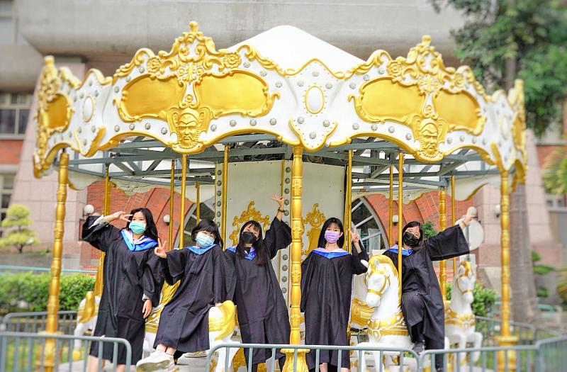 旋轉木馬成校園打卡熱點 朝陽科大畢業布置夢幻吸睛