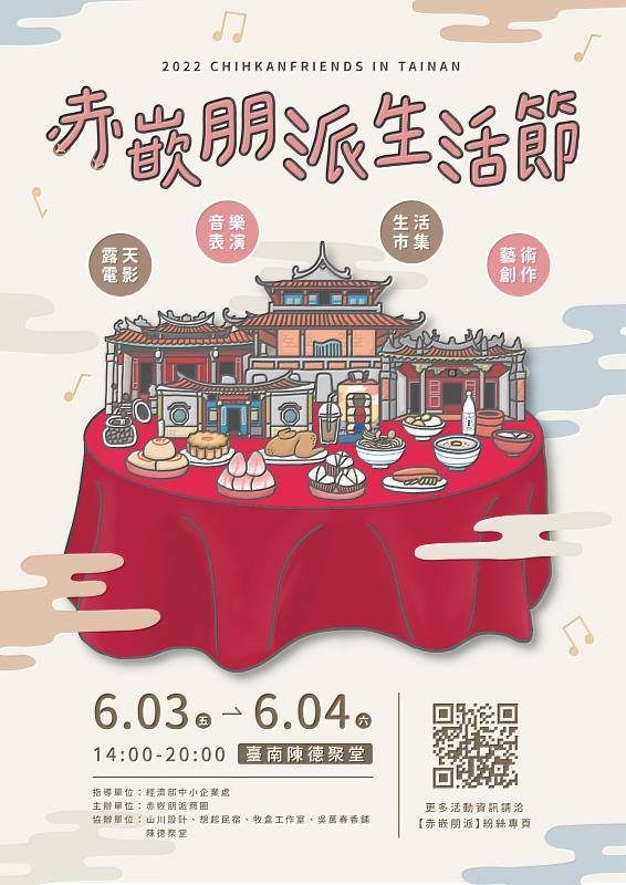 (中央社訊息服務20220602 17:01:43)臺南赤嵌朋派商圈將於6月3-4日(週五、六)下午2時至晚上8時30分於陳德聚堂•明統領府舉辦「2022赤嵌朋派生活節」。活動精采萬分,好康輪番登場,快揪上三五好友,從早到晚逛逛赤嵌生活,作伙來一個特別的端午連假吧!