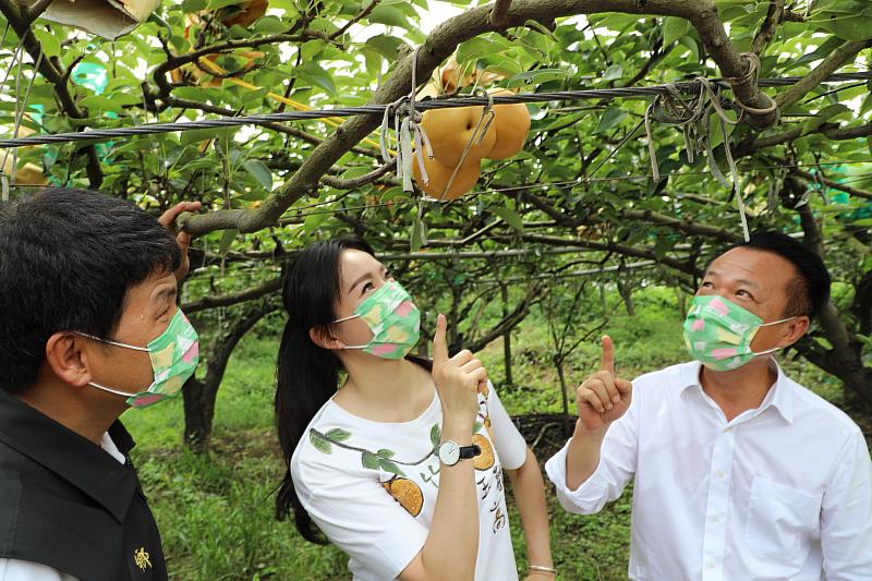 為行銷竹崎鄉高接梨,縣府和竹崎地區農會15日在獅埜村長春農場舉辦玉觀音高接梨上市記者會,活動結合防疫養生概念,推出水梨銀耳露、水梨氣泡飲、水梨蒟蒻、水梨塔等料理,要讓消費者對梨產業有更進一步的認識。
