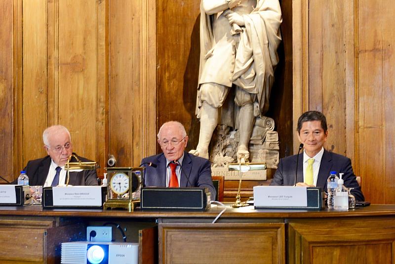 (中央社訊息服務20220621 10:37:54)文化部長李永得昨(20)日與法蘭西學院人文政治科學院(Académie des Sciences Morales et Politiques)年度主席布哈格(Rémi Brague)及終身秘書皮特(Jean-Robert Pitte)共同於法蘭西學院主持第25屆「臺法文化獎」頒獎典禮。李永得表示,就任文化部長後的首次出訪即安排赴臺法文化獎,代表的是對臺法文化獎及臺法友誼的高度重視。
