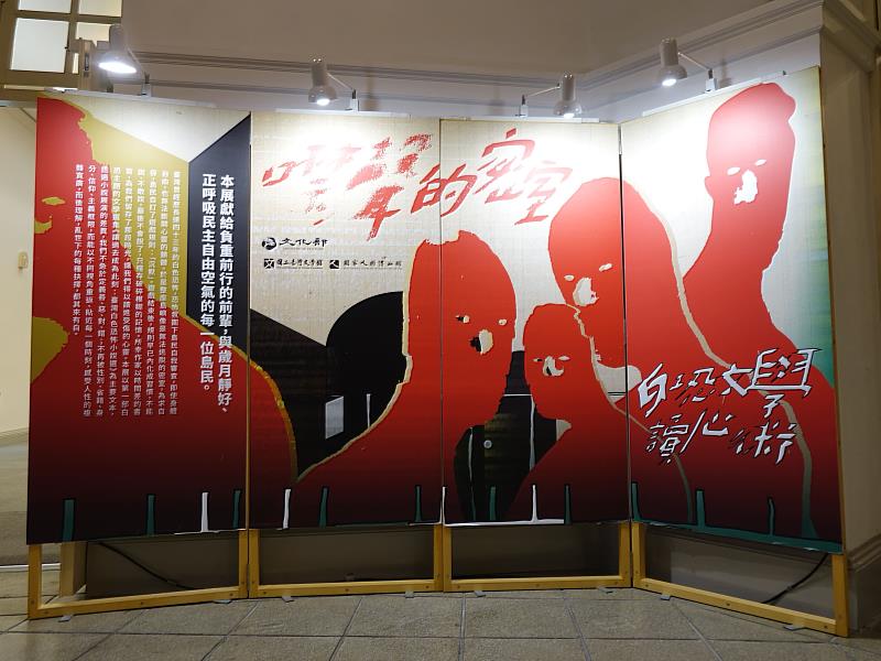 白恐文學展自從在國家人權博物館與20多所高中巡迴後,現將回到臺文館內文學沙龍展出。特別將國家人權博物館及春山共同出版的《讓過去成為此刻:臺灣白色恐怖小說選》,以嶄新的五大單元呈現,帶觀眾感受白恐時期的人們彷彿置身無法言說、更無法逃脫的密室,透過作家1980年代後回頭書寫的白恐文學,才得以窺探他們的內心。