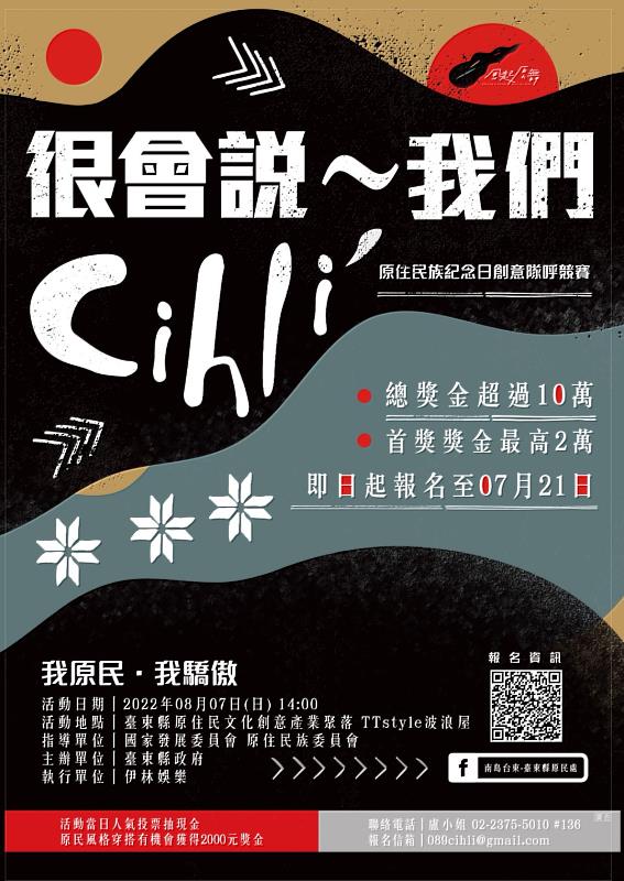 台東縣政府表示,今年是原住民族正名運動28週年,為了強化部落青年對自身文化及語言的重視,特別舉辦此一創意隊呼競賽「很會說~我們·cihli'」(音近「七烈」),為多數原住民族常使用之讚嘆詞,並鼓勵部落(社區)組織激發創意,期盼透過此競賽來展現族群自信,提升原住民族人的族群認同及文化認同,也希望藉由豐富多元的活動,打造原住民族表演藝術文化基地,提供族人更多展現才華的機會與舞台。