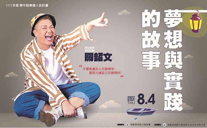 8/4關韶文與青年朋友分享「夢想與實踐的故事」 北分署「名人職涯講座」即日起免費報名