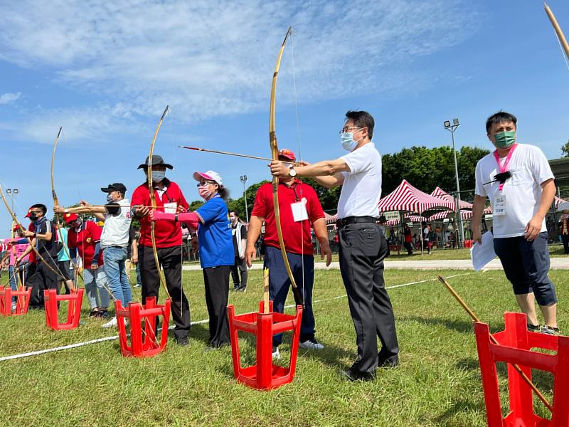 新北市政府陳純敬副市長昨天特別到場勉勵參賽選手,他表示狩獵文化是原住民生活中重要的一環,原住民族傳統射箭為祖先珍貴傳統技藝文化與智慧,為能保存固有傳統文化,推動祖先留下來的生活智慧,並藉由文化活動及射箭競賽之過程中凝聚族人情感,彰顯射箭文化,使傳統射箭這項傳統民族運動蓬勃發展,新北市持續舉辦傳統射箭全國邀請賽,推廣傳統射箭技藝至全國。他也與原民局羅美菁局長在裁判長的引導下與在場貴賓馬見Lahuy Ipin議員、楊春妹議員、蘇錦雄Paylang Caya議員、新北體育處洪玉玲處長、高灘處張修銘代理處長、烏來區周守信區長及樹林區王坤南區長一同為比賽射出第一支箭,象徵比賽正式開始,祝福選手們可以拔得頭籌。