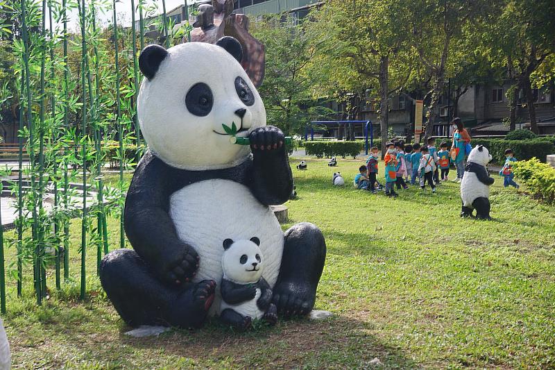 泰山區公所及在地里長們,用心營造公園環境,並期望透過這些可愛動物,營造出泰山區的亮點特色,來到泰山楓樹腳公園內的楓樹福泰市民活動中心,出入口對面有許多熊貓就在公園草地上玩耍覓食,為這片草皮增添了活力;在泰山區仁愛公園、文程廣場及貴子兒童公園之中,可以看到一群又一群的白鵝,在水池邊嬉戲,或是在草地上悠閒地曬太陽,而在公園另一角,也可以發現許多羊爸媽帶著小羊在公園的草地上悠哉地散步覓食,為這些公園增添了農村的悠閒氣息;貴和兒童公園中也有開心做農的水牛以及一群穿著可愛衣服協助農務的鵝,擬人化的打扮更可以吸引孩子們的目光,同時營造悠閒農村的景象;在貴子兒童公園中,更有一座漂亮的馬車,還有許多昆蟲隱藏在公園的角落,等著市民朋友們一起來公園尋找更多可愛動物們的身影喔!