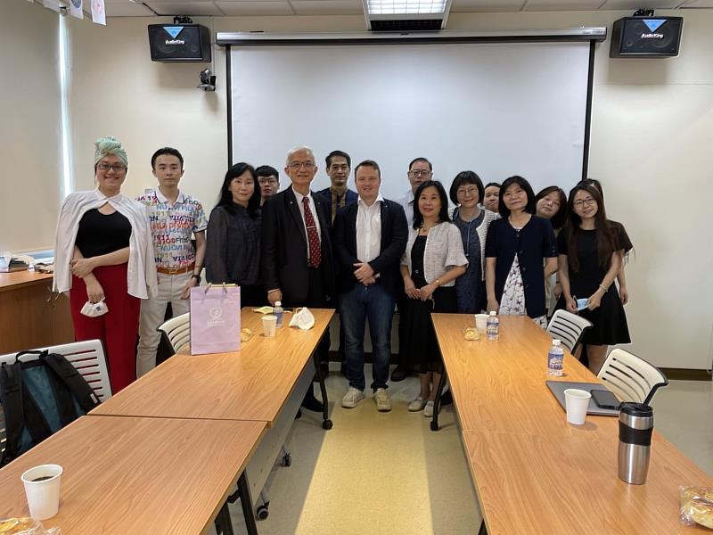 這些由淺而深的介紹,引發了多位老師與參與貴賓們熱烈的互動和討論,會議比預定時間延長了半個多小時,結束時由謝邦昌副校長代表贈送校旗與紀念品,大家紛紛與遠道而來的嘉賓Jan Carols先生合影留念,留下了美好的鏈接紀念!