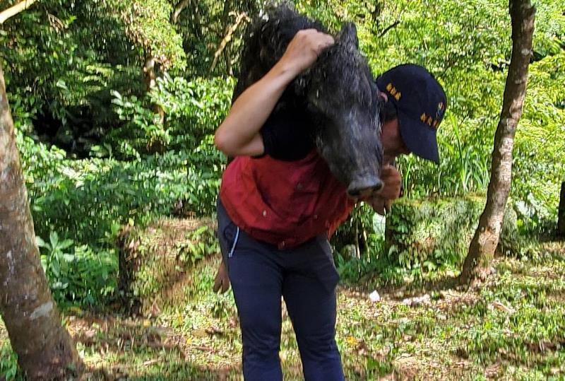 新北動保員英勇深入叢林 揹出重傷山豬成功救援
