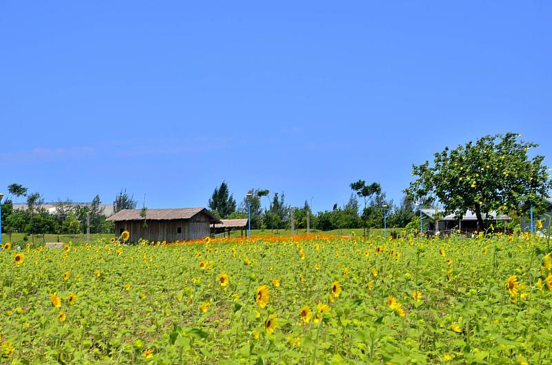 新北市綠美化環境景觀處與八里十三行博物館及八里區公所合作,在考古公園草坪區以撒播百日草為主,伴佐大波斯菊及向日葵,營造遼闊繽紛的花海視覺意象;花形細緻美麗的百日草滿布草地上,隨風搖曳如彩色波浪湧動,浪裡翻滾著數不清的顏色,以色彩、線條、圖形之變化提升市容美學品質;而館方更在花海區設置裝置藝術《詩步領羊》,讓花海活潑生動,可愛吸睛,民眾隨手即可拍出個人專屬的花海美照。