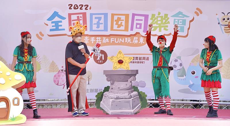 縣長潘孟安於開幕兒童劇中擔任神秘嘉賓,並揭開為期兩日「2022全國囝囡同樂會」的活動序幕!頂著屏東永遠多一度的熱情,囝囡王安安阿伯無論是下場與小選手們一同萌踢足球、酷飆滑步車,以及體驗益智闖關活動,均讓現場歡笑聲四起,氣氛爆棚,且場內童言童語的小小選手們比賽神情及態度超級認真,萌化大人的心!
