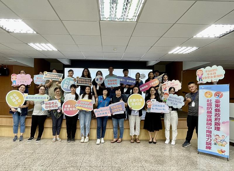 臺東縣政府表示,「社區防暴宣講師」培力計畫將培訓過程分為三個階段,每個階段各有16小時培訓課程;經過初階培訓筆試合格者,可參與中階培訓並進行試講考評,課程以專業性、互動性與讓學員上台演練的方式進行,相當務實豐富,學員們吸收專業講師的教導並以自己熟悉的語言(母語)進行有關防暴試講考評。此次研習共有14名學員完成防暴宣講師中階訓練,成為臺東縣儲備防暴宣講師,未來將持續至社區宣講,深化宣講量能。