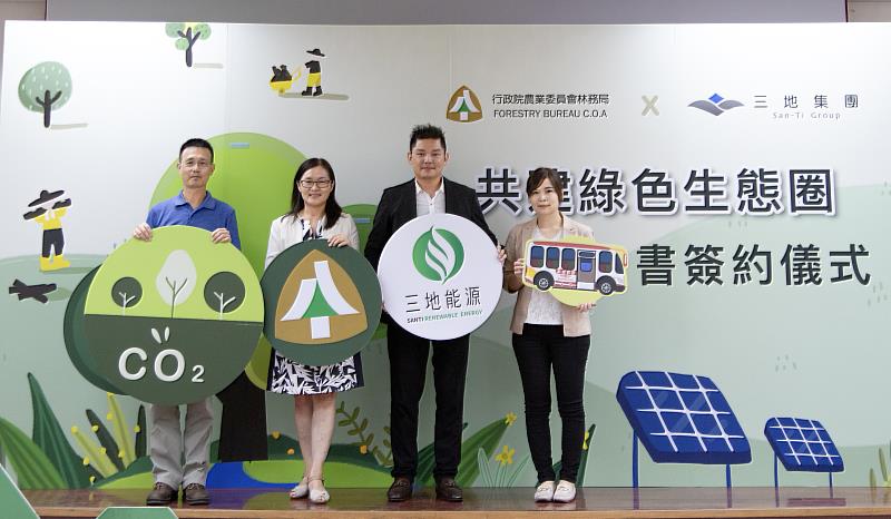 (中央社訊息服務20220826 09:49:15)三地集團8月24日與行政院農業委員會林務局屏東林區管理處舉行合作意向書簽約儀式,雙方就共同推展屏東地區交通接駁與串聯、綠色旅遊、綠能光電、綠色生態等四大面向達成合作共識,期望藉由上述各面向多管齊下的執行,發揮產官合作最大功能性,在全球聚焦淨零減碳趨勢當下,加速臺灣淨零路徑穩健達標。