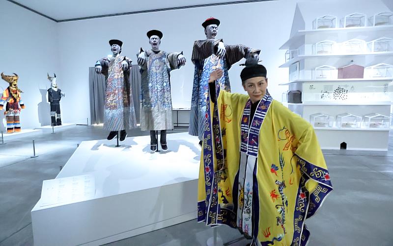 (中央社訊息服務20220830 16:01:01)台南美術館「亞洲的地獄與幽魂」Cosplay專場最終場8/27隆重登場,舞台劇「魔法阿媽」郎祖筠特別著戲服現身南美館與所有玩家同樂,並與台南市觀旅局長、南美館館長、董事長、立委賴品妤一起為活動進行開幕。