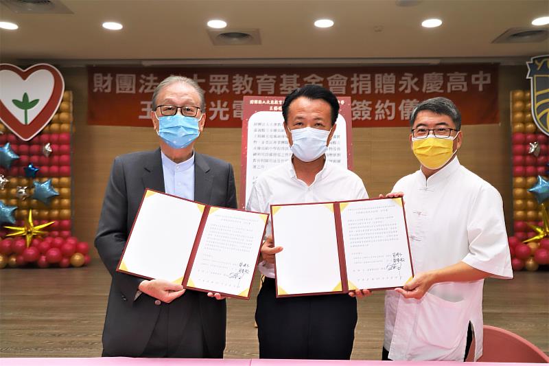 今日捐贈儀式,永慶高中在大眾教育基金會支持之下,將擁有最優質的學習環境,逐步邁向融合雙語、愛鄉土、用科技、接國際的教育願景。