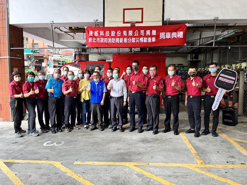 新北市政府消防局主任秘書陳國忠表示,由衷感謝捷威科技捐贈災勘車,強化新板山搜義消分隊山搜救災能量,讓捷威科技公司的善心成為前往山域搜救時的好幫手。