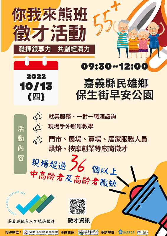 嘉義縣銀髮人才服務據點10月13日揭牌!企業徵才釋出36個中高齡職缺