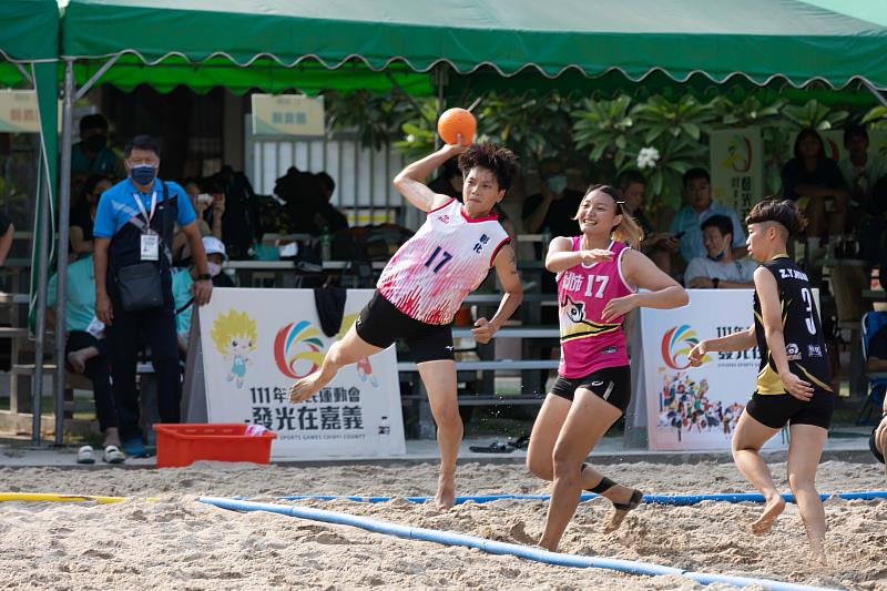 (中央社訊息服務20221005 13:57:07)111年嘉義縣全民運沙灘手球邁入第3天,10月4日賽程,其中女子組在新北市擊退彰化縣後,4強名單也正式出爐,由新北市、桃園市、高雄市、臺中市殺入4強,4強戰將在5日展開,首場由新北市對陣臺中市、第2場由高雄市對決桃園市。