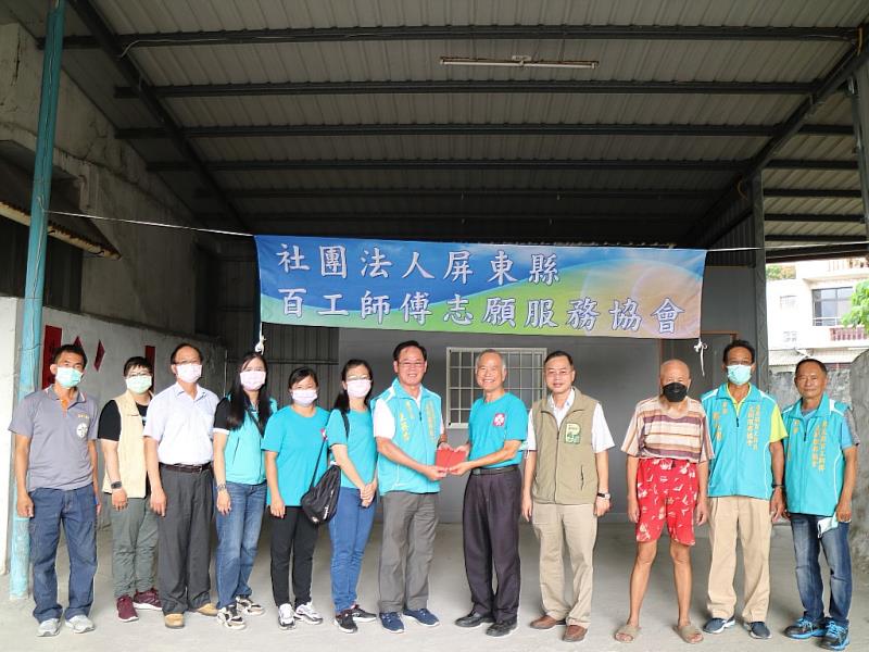 (中央社訊息服務20221007 14:10:22)「屏東縣百工師傅志願服務協會」(以下簡稱協會),由王英吉理事長帶領協會理、監事,及各工會百工師傅志工,提供縣內弱勢民眾有房屋修繕需求的服務。協會本次服務個案由縣府社會處內埔家庭福利中心轉介,案家為具低收入福利身分高齡獨居老人,其居住處為80年以上老房,部分結構已損壞,每逢雨季漏水導致室內泥濘不堪,浴廁設備損壞無法使用,無論是如廁或沐浴都相當不便,居住環境惡劣,社工連結本縣百工師傅志願服務協會協助修繕。