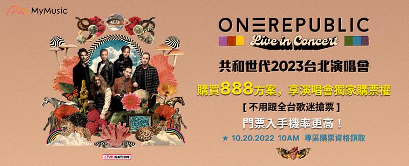 (中央社訊息服務20221014 12:50:45)台灣大哥大與旗下音樂串流平台MyMusic攜手全球最大演唱會娛樂公司LIVE NATION台灣分公司Live Nation Taiwan,共同規劃會員專屬的演唱會購票活動。隨國門逐漸解封,越來越多國外知名團體也將接力登台,美國搖滾天團「共和世代」(OneRepublic)將於2023年3月5日帶著引爆全球熱潮的新曲首登台北小巨蛋開唱,門票將於10月21日正式開賣。為了回饋VIP用戶的支持,台灣大哥大與MyMusic都規劃了專屬購票區,台灣大VIP用戶可於10月18日起至台灣大客服App優惠專區索取VIP專區購票序號,另外,購買MyMusic年費888元方案升級黑鑽VIP,也可以在10月20日上午10點搶先領取保留席次購票專區的序號,不用跟全台粉絲比手速,大幅增加購入演唱會最佳席次的機會。