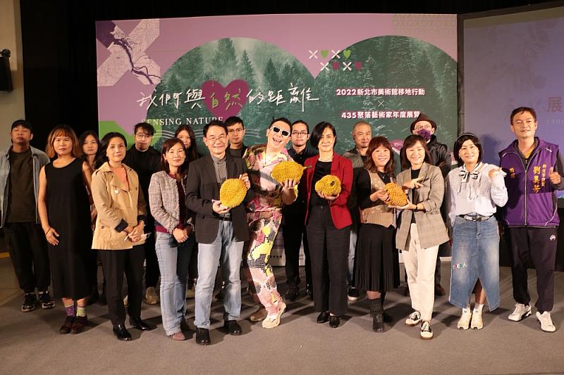 (中央社訊息服務20221018 17:31:55)新北市美術館於今年規劃啟動「移地行動NTCAM On the Move」系列計畫,與新北博物館串連合作,共同推出「XOXO我們與自然的距離」展覽,今(18)日於板橋435藝文特區舉辦開幕活動,文化局副局長于玟、參與藝術家法咪咪、陳淑燕、陳聖文,以及本次參與法咪咪作品製作的永平高中及新埔國中師生們也都到場共襄盛舉。學生們第一次看到完成後的作品影像,都相當的興奮,開幕現場藝術家也特別結合展出作品舉辦限時攝影大賽,與到場的師生及觀眾互動。
