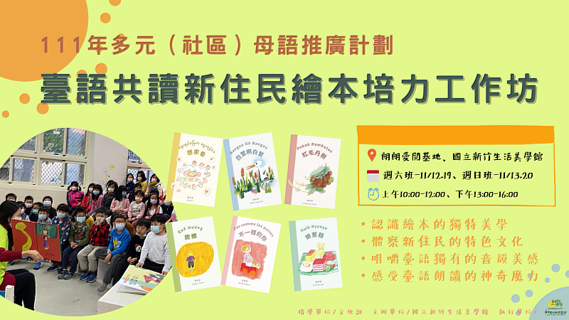 111年多元社區母語推廣計畫 臺語共讀新住民繪本培力工作坊 開始報名!